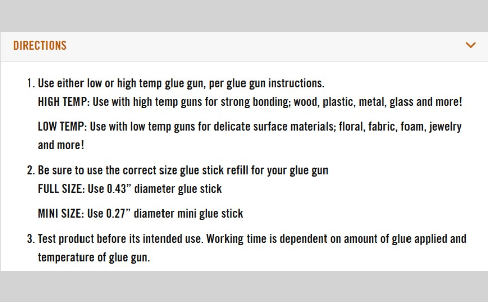 For best results, use the correct glue stick size — 0.43" for full-size guns and 0.27" for mini glue guns — and store below 130°F, away from direct UV light. Whether for crafting, woodworking, home repairs, or decorative projects, these versatile glue sticks are your go-to solution for dependable, long-lasting bonds.