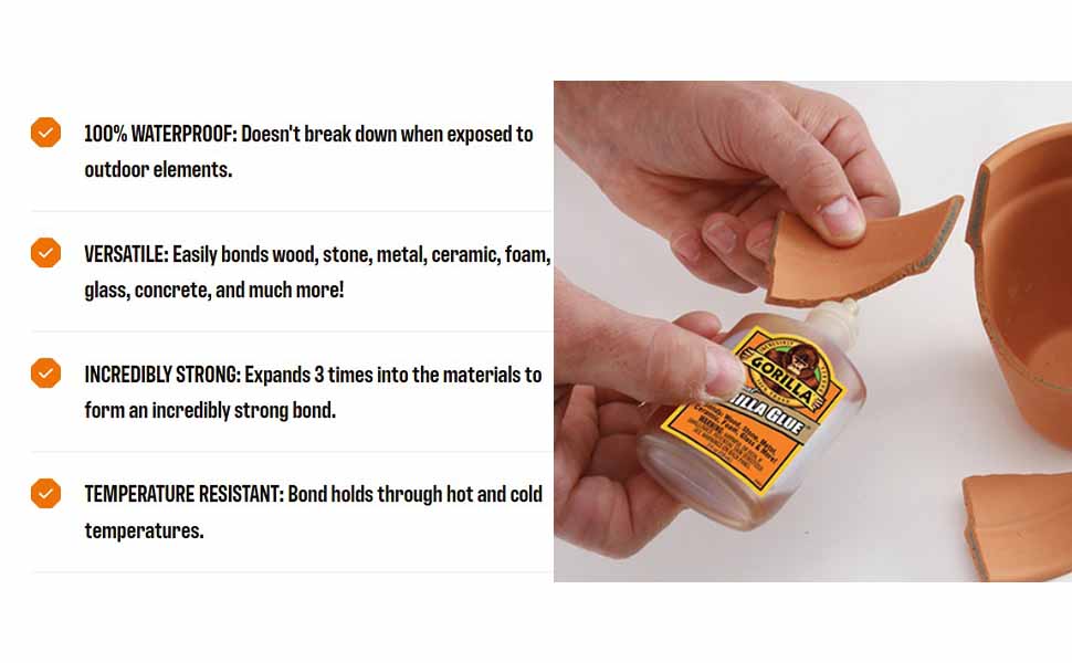 Easily bonds wood, stone, metal, ceramic, foam, glass, concrete and much more!