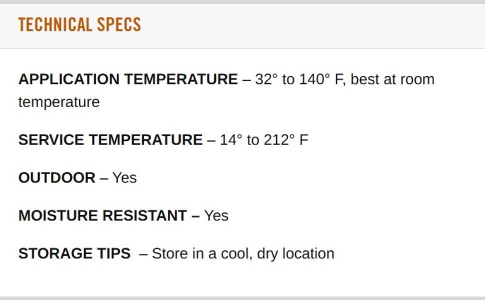 | APPLICATION TEMPERATURE | 32° to 140° F, best at room temperature |