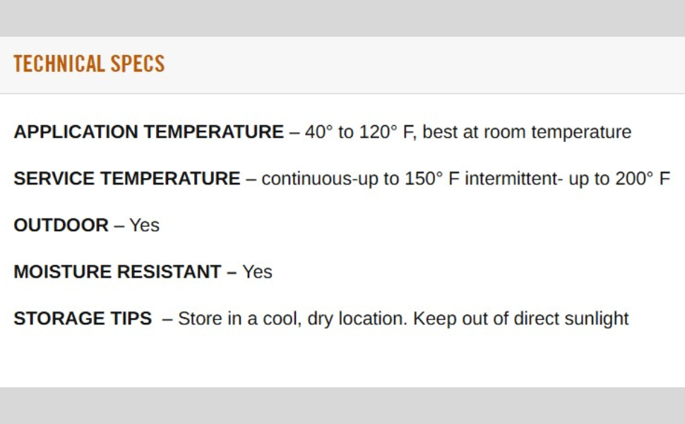 | APPLICATION TEMPERATURE | 40° to 120° F, best at room temperature |