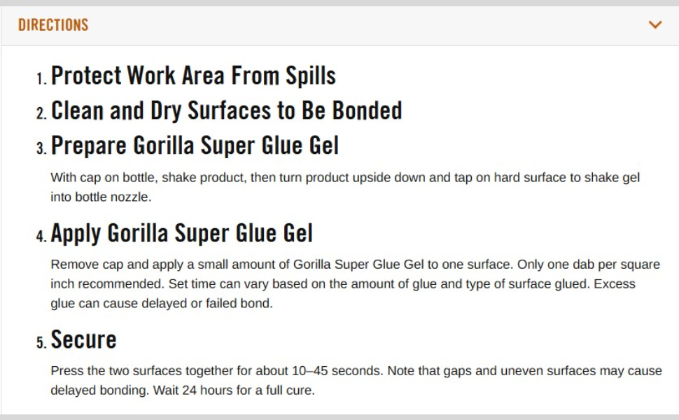 Gorilla Super Glue Gel is an easy-to-use, thicker and more controlled formula great for multiple surfaces and vertical applications. Developed for long-lasting repairs in an instant, the clear glue dries in 10–45 seconds. This super glue gel is specially formulated to absorb drops and impacts. Super glue, also referred to as cyanoacrylate glue, or CA glue, works on a variety of materials, including plastic, metal, stone, ceramic, paper, rubber and more. In addition to its high performance formula, we’ve added an anti-clog cap with a metal pin inside to ensure an airtight seal for maximum reusability. It’s Gorilla tough, every time.