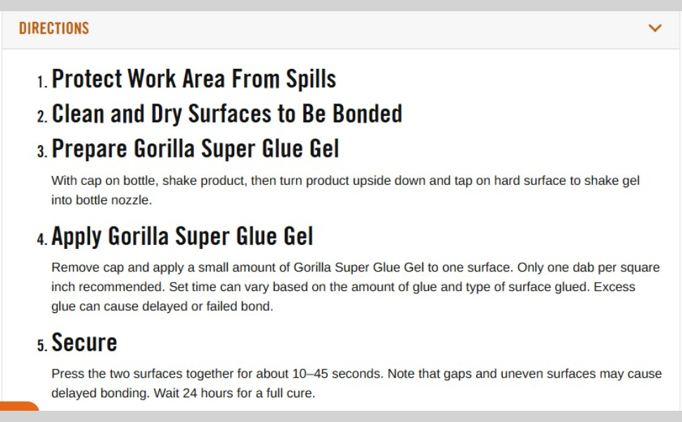Gorilla Super Glue Gel is an easy-to-use, thicker and more controlled formula great for multiple surfaces and vertical applications. Developed for long-lasting repairs in an instant, the clear glue dries in 10–45 seconds. This super glue gel is specially formulated to absorb drops and impacts. Super glue, also referred to as cyanoacrylate glue, or CA glue, works on a variety of materials, including plastic, metal, stone, ceramic, paper, rubber and more. In addition to its high performance formula, we’ve added an anti-clog cap with a metal pin inside to ensure an airtight seal for maximum reusability. It’s Gorilla tough, every time.
