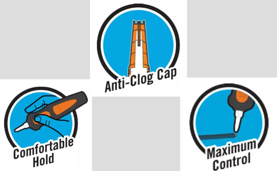 Dispenses super glue in an uninterrupted line, while applying little pressure.